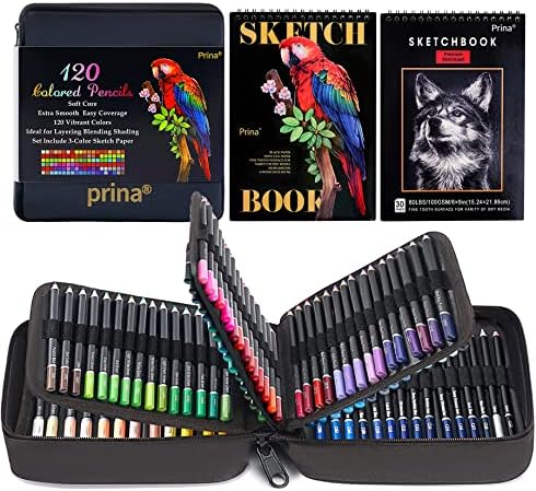 • Prina 120 Colored Pencil Set with Case, Sketchbook, and Tutorial