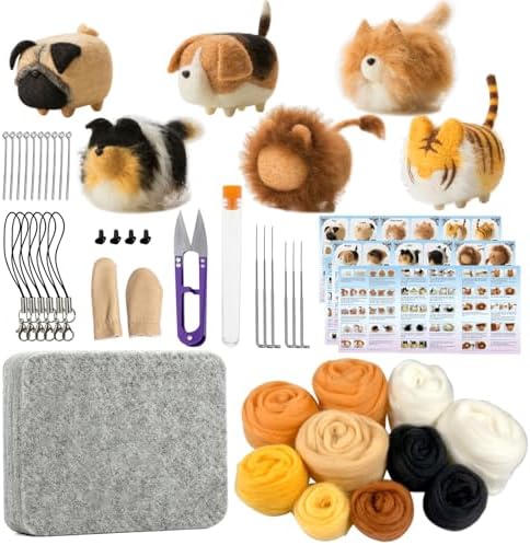 Kit includes all tools and materials needed: 6 Colored Wool Roving 1.8oz, 1x Wool Needle Felting Pad, 6x Needles in bottle (38 gauge x 3, 40 gauge x 3), Instruction and tutorial videos, 6pcs Phone lanyard, 10pcs 9-Shaped Needles, Cat’s Whisker, 1 Pair Leather Finger protector, 1 x Wooden Felting Tool