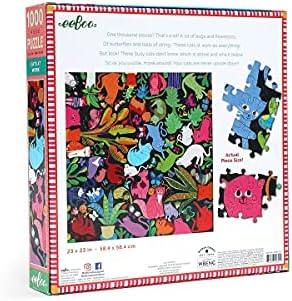 eeBoo’s Piece and Love Cats at Work square puzzle is a 1000 piece puzzles that has images that build from the edges toward the center and can be constructed from all sides, making it a perfect family activity. This clever puzzle with its colorful cats – each with a unique personality make this puzzle as fun to look at it as it is to build. Every time you do, you are sure to notice something new. No top, or bottom, fun to work on from any side. A perfect gift for the feline lovers! Illustrated by Monika Forsberg. Our 1,000 piece jigsaw puzzles are thoughtfully commissioned and beautifully designed to offer a screen-free, relaxing way to practice contemplative mindfulness or share a gentle cooperative activity with friends and family.