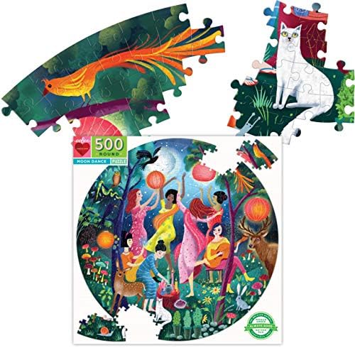 eeBoo’s Piece and Love Moon Dance circular puzzle is a celebration of sisterhood and the magic of the natural world is captured in artwork by Uta Krogmann. This richly detailed round puzzle captures dancers, musicians and wildlife engaging in the wilderness under a full moon. Our 500-piece jigsaw puzzles are thoughtfully commissioned and beautifully designed to offer a screen-free, relaxing way to practice contemplative mindfulness or share a gentle cooperative activity with friends and family. The round jigsaw puzzle format lends additional clues to the pieces’ orientations.