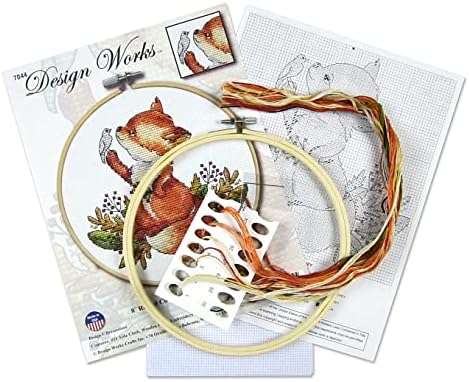 Beautiful designs and top quality materials make Design Works one of the top cross stitch kit makers worldwide. This package contains 11 count Aida, 100% cotton embroidery floss, one 8-inch embroidery hoop, one needle and fully illustrated chart and instructions. Finished Size: 8 inch round. Design: Fox. Made in USA.