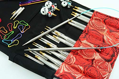Made of high quality stainless steel, HiyaHiya Sharp Steel Interchangeable Needles feature keyless screw-on connections with flexible cables, near perfect joins and a slick but not too slick, smooth finish with sharp tips that are great for increasing, decreasing and intricate stitch patterns. They are lightweight to handle and will warm quickly to the hand, This Limited Edition Set includes 13 sets of needle tips (2US/2.75mm – 15US/10mm) with 4 cables (18, 26, 34, 42 inch), Small Cable Connectors, Tip Adapter, Small and Large Panda Stoppers, Small and Large Single Point Adapters, Puppy Snip, Darn Its, and Knitters Safety Pins. Each set also includes a practical and portable brocade case and needle grips. Assorted fabric cases. Tip length is approximately 5 inches.